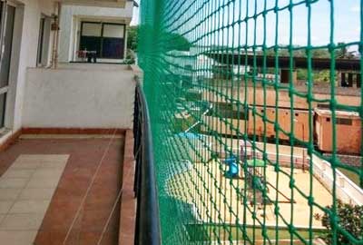 These balcony, security screens are strong, transparent nylon thread coloured offering security without compromising the aesthetics of apartments. They are set to windows, partitions, balconies, stairs and floors providing protection without sacrificing the ventilation and lightness of a metallic balcony fence.